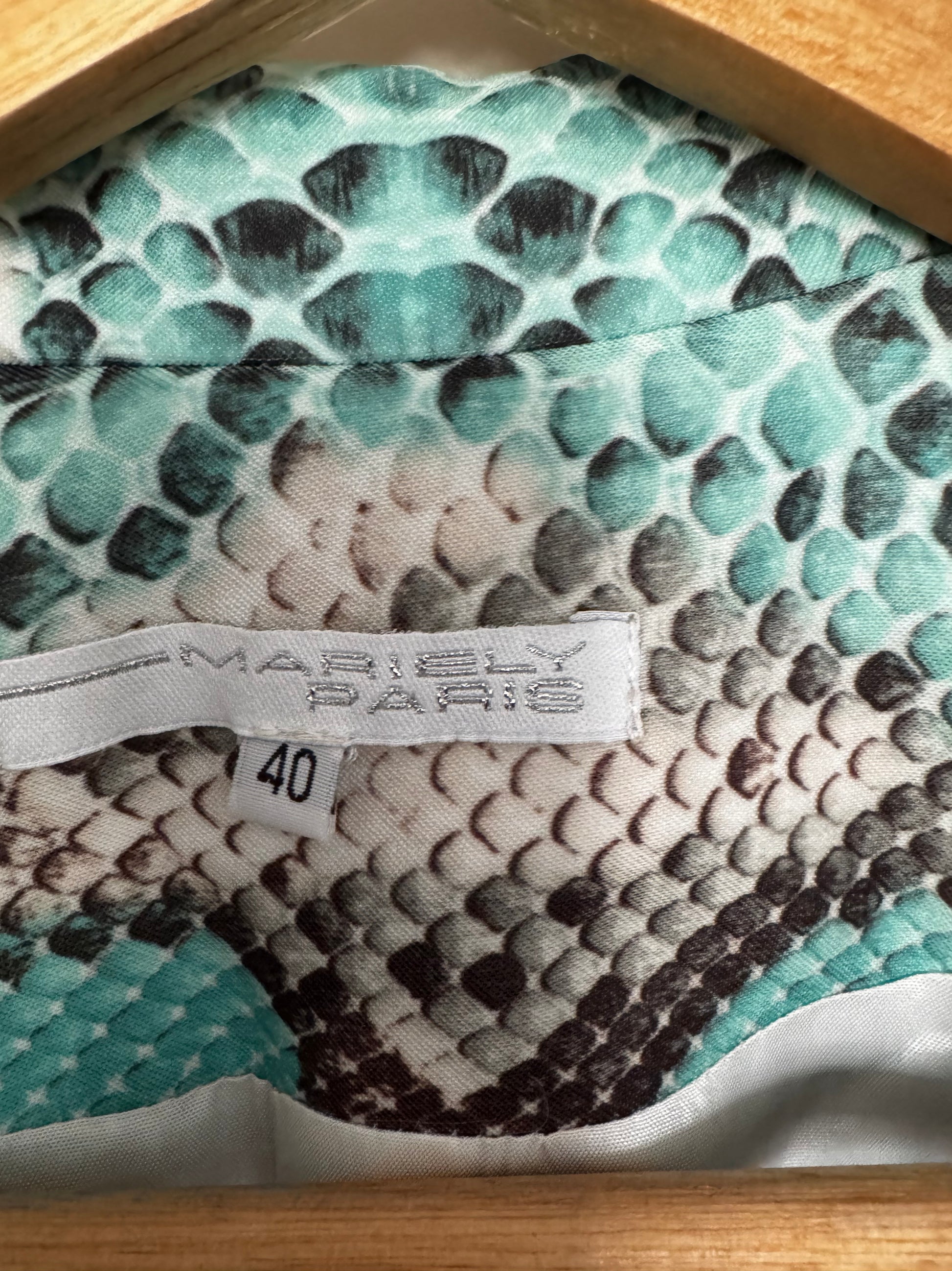 Découvrez ce blazer vintage Mariely, pièce unique sélectionnée pour la collection chicretrostore. Confectionné en France, ce blazer se distingue par son imprimé python audacieux aux nuances vertes et naturelles, offrant une allure sophistiquée et moderne.