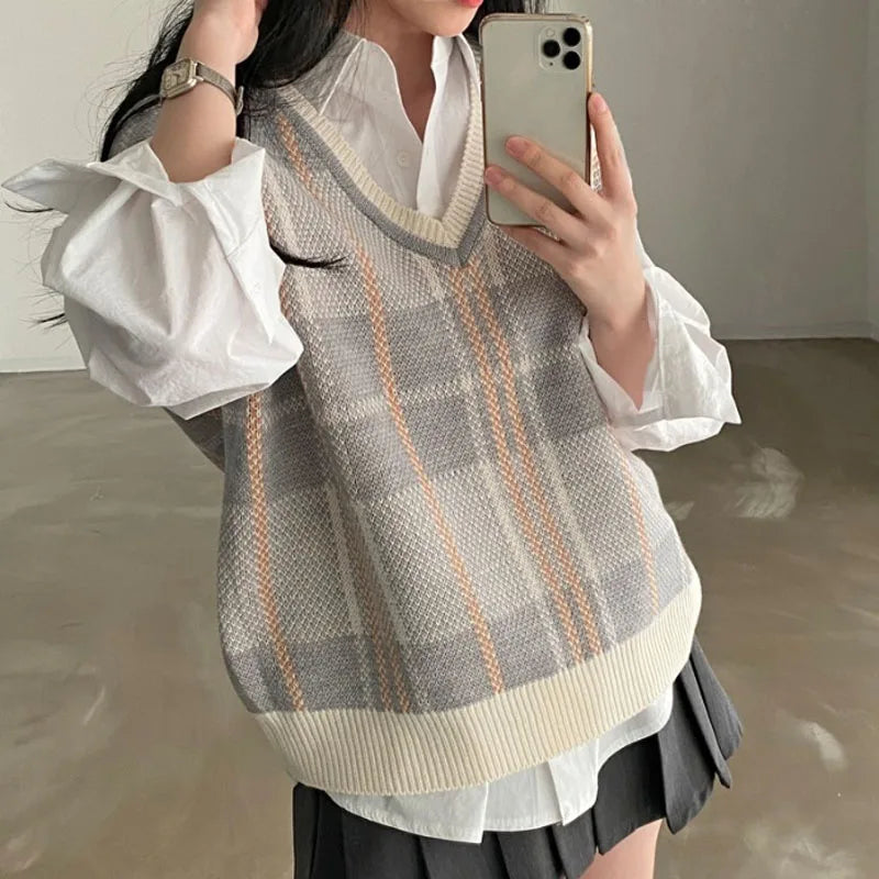 Découvrez le PULL VINTAGE A CARREAUX EN TRICOT COREEN, un incontournable pour votre garde-robe automnale. Avec son col en V et sa coupe ample, ce pull allie confort et style.